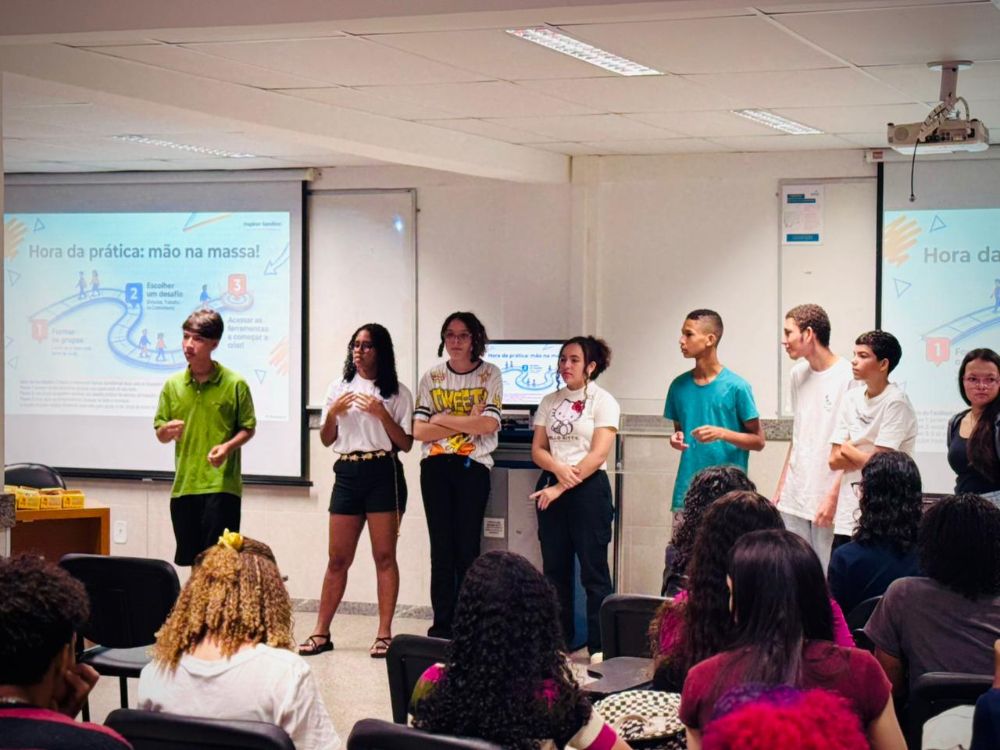 Ao final, os alunos também participaram de uma oficina com foco em marketing digital voltado para jovens, conduzida pela instrutora Luiza Supelete, que ensinou como usar as redes sociais para crescer profissionalmente.