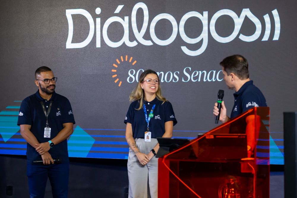 A programação incluiu, também, um momento com dois funcionários cujas histórias de trabalho, ao longo de décadas de dedicação, representam parte significativa da própria trajetória da instituição: a Diretora de Educação Profissional do Senac-ES, Dianimer Dutra, e o Garçom do Hotel Senac Ilha do Boi, Carlos Alberto Alves, ex-aluno da unidade.