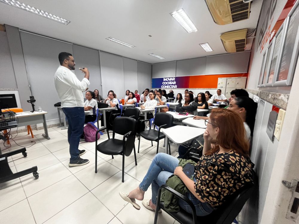 No primeiro dia, a palestra “Saúde Mental e as Influências no Ambiente de Trabalho”, ministrada por Lucas Galdino, destacou a importância do equilíbrio emocional no cotidiano profissional.