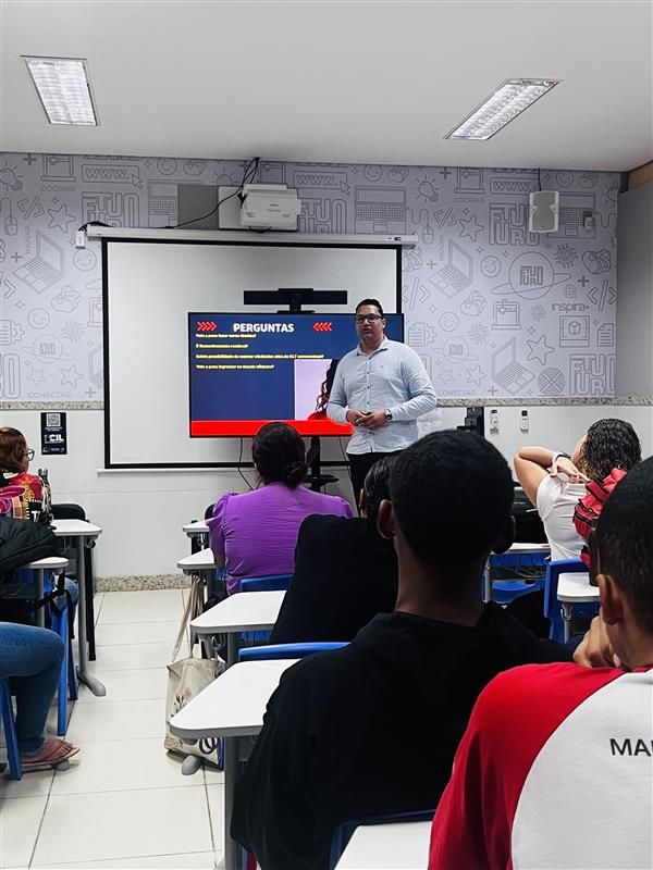 Na quinta-feira (29), os alunos refletiram sobre os desafios e oportunidades no setor industrial e petrolífero durante a palestra “Perspectivas da profissão de técnico na indústria e no setor offshore”, apresentada por André Gonzaga Margon.