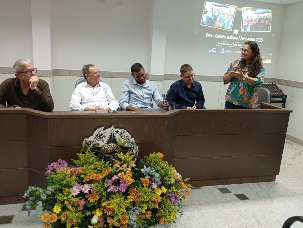 Promovida no auditório da Promotoria de Justiça da cidade, a formatura teve a presença de representantes da instituição e da municipalidade, de outras autoridades locais, de familiares dos estudantes e da Instrutora da turma, a Chef Flávia Portugal. “Cozinha é ensinar e, ao mesmo tempo, aprender. Também não adianta termos um livro de receita em mãos. Precisamos aprender a técnica e entender como improvisar diante de algum imprevisto, para seguir adiante. Viver é loucura e, na cozinha, é mais ainda. Mas amo o que faço, e amei estar com vocês, alunos. Desejo que façam sucesso. Contem comigo”, afirmou Flávia.