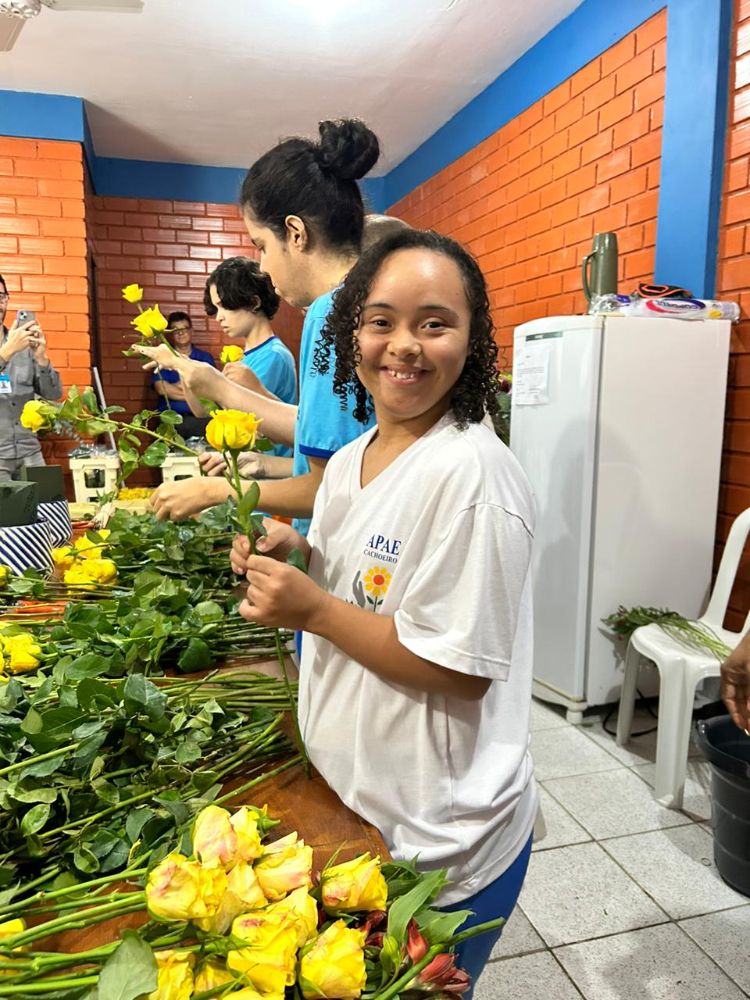 O Senac Espírito Santo, em parceria com a Associação de Pais e Amigos dos Excepcionais (APAE) de Cachoeiro de Itapemirim, está realizando uma oficina do Projeto Ao Som das Flores com o objetivo de oferecer inclusão por meio de qualificação profissional. A ação começou na quarta-feira (8) e segue até sexta (10) de maio, das 13h às 17h, na sede da APAE, no Bairro São Geraldo.