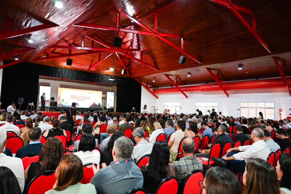 Com auditório lotado, o Sesc Cachoeiro de Itapemirim, no bairro Aeroporto, sediou, na manhã desta quarta-feira (26), a solenidade de lançamento da 7ª edição do projeto “Belezas do Sul”, realizado pela TV Gazeta Sul, com apoio do Senac Espírito Santo e parceiros. A edição tem como objetivo principal propor, debater e alinhar estratégias para transformar o potencial turístico da Região Sul em oportunidades concretas para a economia local.