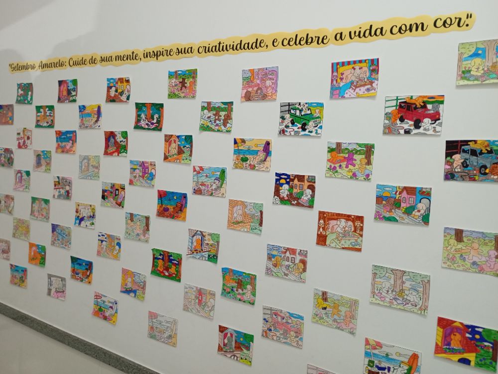 Em outra atividade alinhada à proposta do Calendário da Diversidade, alunos e colaboradores da Unidade de Cachoeiro de Itapemirim foram incentivados a pintar desenhos inspirados no livro de colorir “Bobbie Goods”, febre mundial da atualidade. As peças estão expostas em um dos corredores internos do prédio.