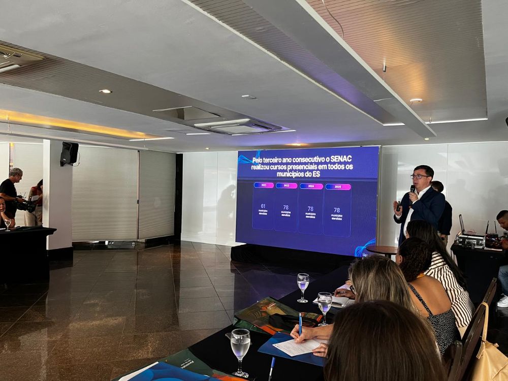 O Senac Espírito Santo, instituição que integra o Sistema Fecomércio-ES, encerra 2025 com resultados expressivos relacionados à educação profissional e, mais uma vez, consolida sua presença em todas as regiões do Estado e amplia o acesso à qualificação por meio de investimentos estratégicos, programas de gratuidade e expansão da infraestrutura educacional. Os dados foram apresentados em coletiva de imprensa na manhã desta quarta-feira (17), no Hotel Senac Ilha do Boi, em Vitória.