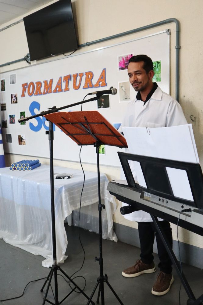 Além de familiares dos socioeducandos agora formados e de servidores que atuam na unidade, a formatura contou com a presença do Gerente de Educação Profissional do Senac de Cachoeiro de Itapemirim, Hiago Couto; do Gerente da Unis Sul, Alessandro Mateus; do Juiz Colaborador do Grupo de Monitoramento e Fiscalização do Sistema Socioeducativo (GMF SE) do Poder Judiciário do Estado, Diego Ramirez Grigio Silva; e da Promotora de Justiça da Infância e Juventude do Ministério Público do Espírito Santo (MPES), Juliana Ortega.