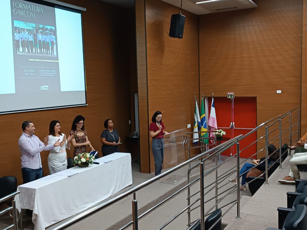 A formatura contou com a presença do Gerente de Educação Profissional do Senac na Serra, Wysner Simões; da Coordenadora de Educação Profissional, Ana Carolina Nascimento; da Analista de Educação Profissional, Aline Ribeiro; da Secretária de Assistência Social, Claudia Maria Silva; e da Promotora de Justiça do Ministério Público local, Drª Graziela Argenta Zanetti.
