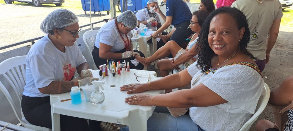 No espaço do Senac, as visitantes foram atendidas pelas formandas do Curso de Manicure e Pedicure, concluído recentemente na Associação Indígena Tupiniquim e Guarani (AITG). As quatro alunas que representam a turma são de origem indígena e colocaram todo o conhecimento aprendido ao longo do curso em prática.