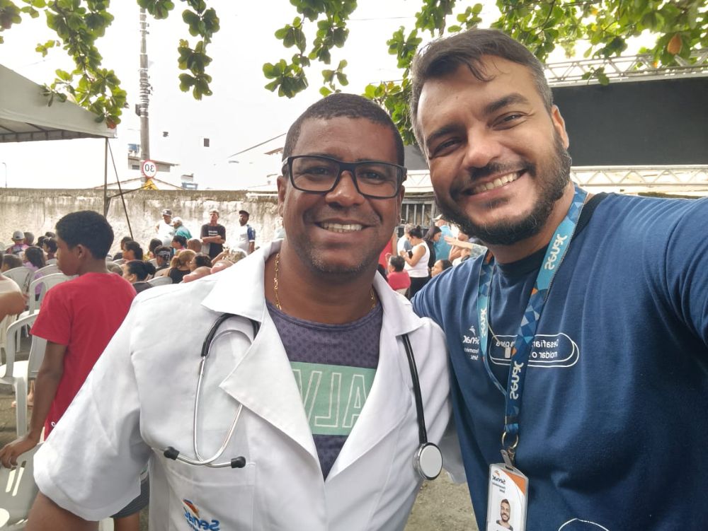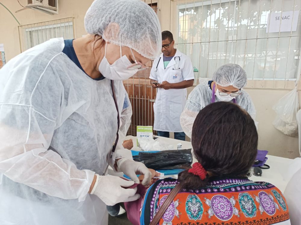 No espaço do Senac Espírito Santo, os alunos do Curso Técnico de Enfermagem, orientados pelo Instrutor Wesley Vinicius, colocaram em prática os conhecimentos adquiridos em sala de aula para atender e orientar a população local com aferição da pressão e teste de glicose. Foram mais de 160 pessoas atendidas ao longo do evento.