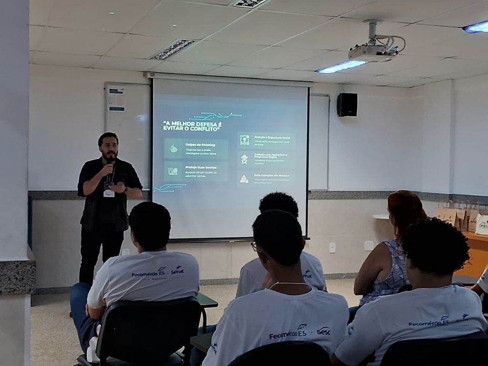 “O Fórum de Tecnologia é um evento para conscientizar todos os alunos do Senac de Linhares sobre a segurança digital. Todo o conteúdo apresentado visa manter nossos alunos seguros no ambiente digital, destacando os riscos e promovendo o uso consciente e saudável das novas tecnologias”, explicou Maurício Mateus Massaria Junior, Instrutor de Educação Profissional do Senac de Linhares.