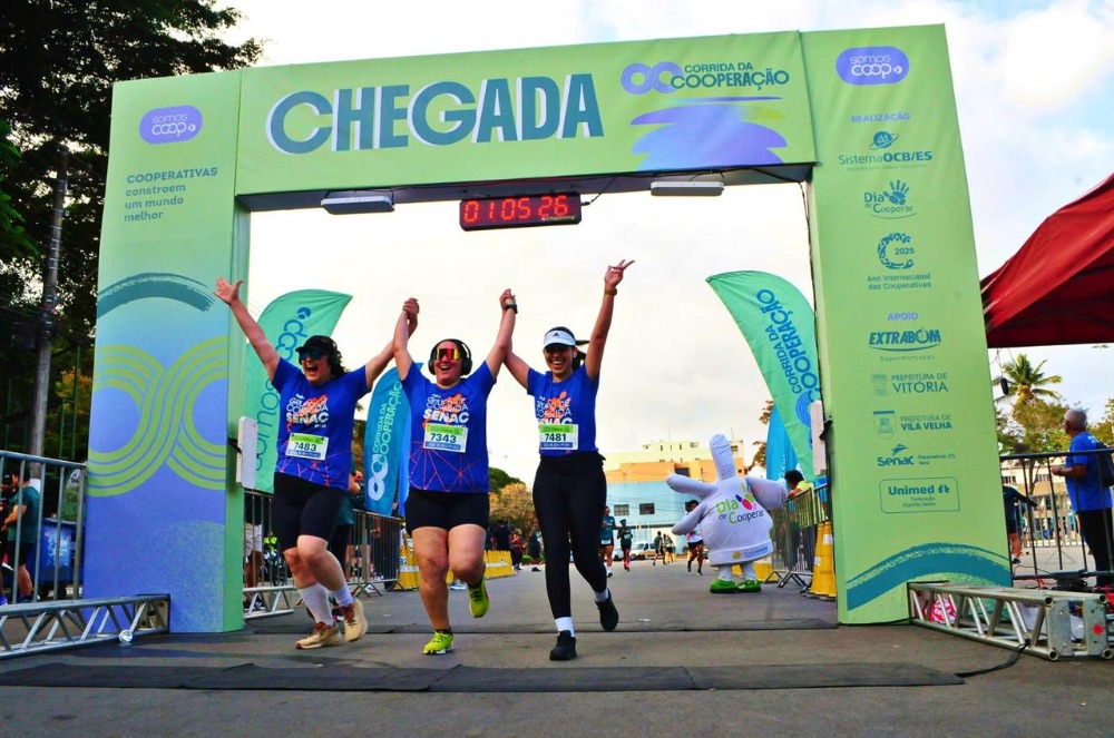 Mais de mil atletas tomaram as ruas de Vitória e Vila Velha no último domingo (17), durante a 1ª edição da Corrida da Cooperação, promovida pelo Sistema de Organização das Cooperativas do Brasil no Espírito Santo (OCB-ES). O evento contou com uma corrida de 7 km, que incluiu a travessia da Terceira Ponte, e uma caminhada de 2 km, encerrando no Parque da Prainha, em Vila Velha.