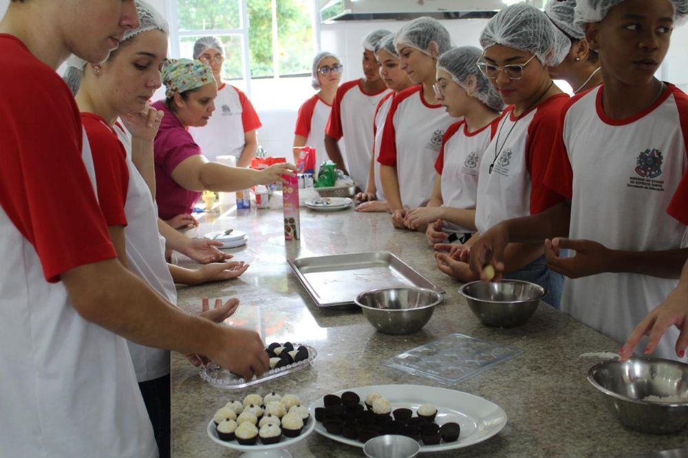 O último dia do evento possibilitou uma imersão gastronômica no segmento da produção de alimentos por meio de um roteiro de estações com a participação de cerca de 100 estudantes nas ações: Docinhos práticos, Preparando lanches rápidos, Oficina de chocolate e Massas caseiras, promovendo uma experiência culinária prática.