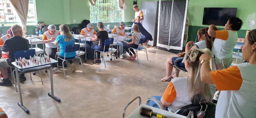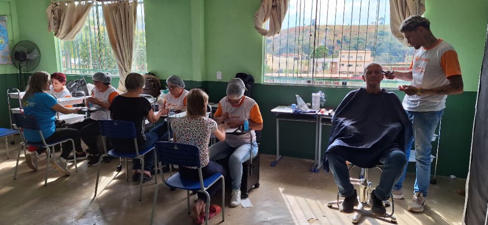 Instrutores e alunos egressos dos cursos de cabeleireiro, barbeiro e manicure estiveram presentes no evento representando a instituição com a oferta de serviços gratuitos de beleza para a população local. Essa iniciativa proporcionou cuidados com a aparência e bem-estar, auxiliando na autoestima e no autocuidado entre os moradores da região.